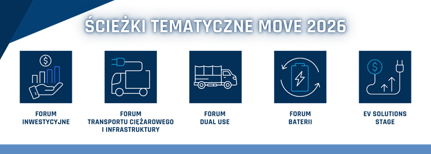 Inwestycje, transport ciężarowy, baterie, technologie dual use i praktyczna elektromobilność – MOVE 2026 odpowiada na kluczowe wyzwania przemysłu, energii i mobilności. Poznaliśmy ścieżki tematyczne, które wyznaczą agendę kongresu.