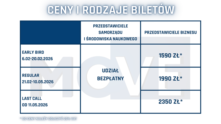 Tegoroczna edycja kongresu MOVE: industry, mobility, investments odbędzie się 27 maja 2026 roku w Poznań Congress Center. W tym samym czasie, na terenie Międzynarodowych Targów Poznańskich odbywać się będą także: ITM Industry Europe, Subcontracting, Europejskie Targi Nauki, Modernlog oraz Smart Warehouse.